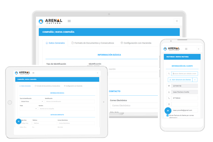 Arenal Factura es una aplicación web para Facturación Electrónica en Costa Rica, es un software completo y fácil de usar, diseñado para pequeñas, medianas y grandes empresas.